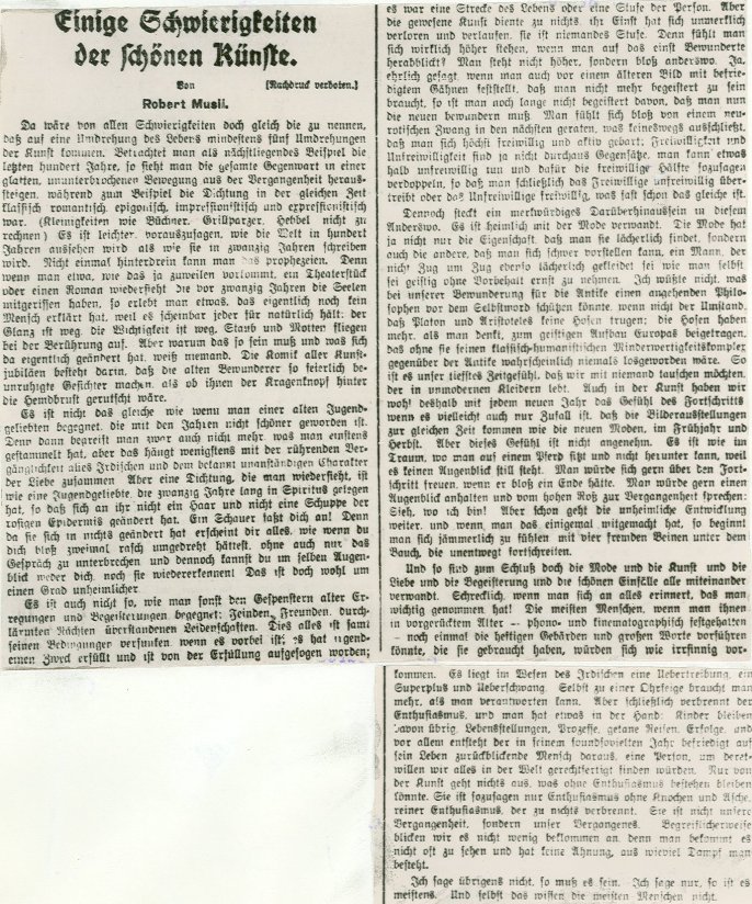 Index of /pd/1942/Robert Musil/Der Mann ohne Eigenschaften (Zürcher Ausgabe)/Drucke/Einige Schwierigkeiten der schönen Künste (1.5.1927)