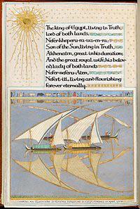 The illuminated Hymn to Aten the Sun-Disc was completed in Egypt, where she was working for the archaeologist Sir Flinders Petrie, making drawings of his finds. The ancient text is attributed to Pharaoh Akhenaten, who worshipped the Aten as the creator of the Universe.