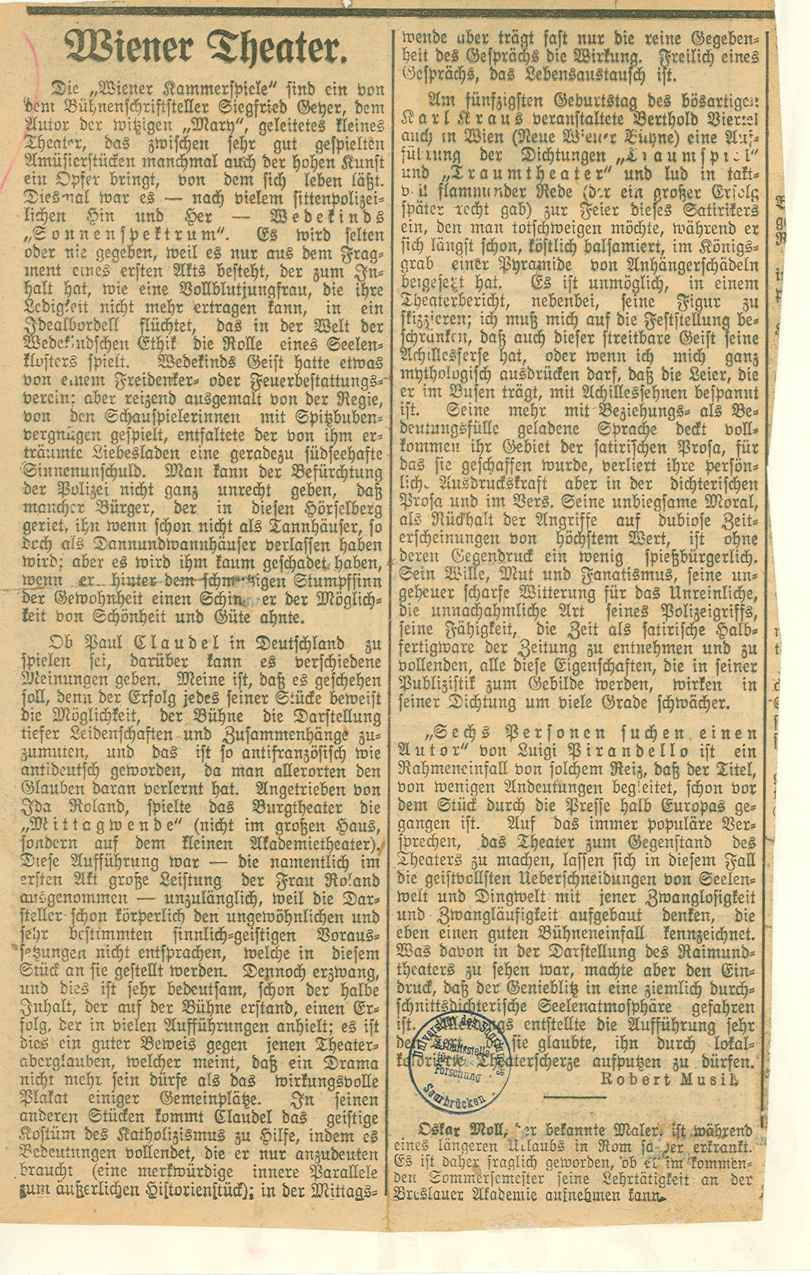Index of /pd/1942/Robert Musil/Der Mann ohne Eigenschaften (Zürcher Ausgabe)/Drucke/Wiener Theater (9.5.1924)